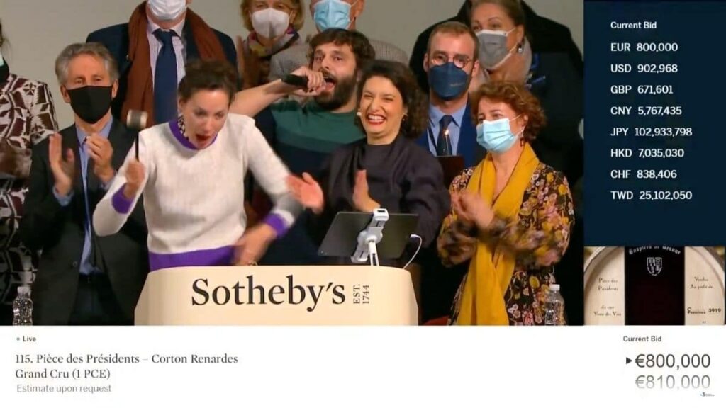 800 000 euros, voici le montant atteint pour l’acquisition de la Pièce des Présidents : un Corton Les Renardes Grand Cru. C’est 140 000 euros de plus que le record de l’an dernier.