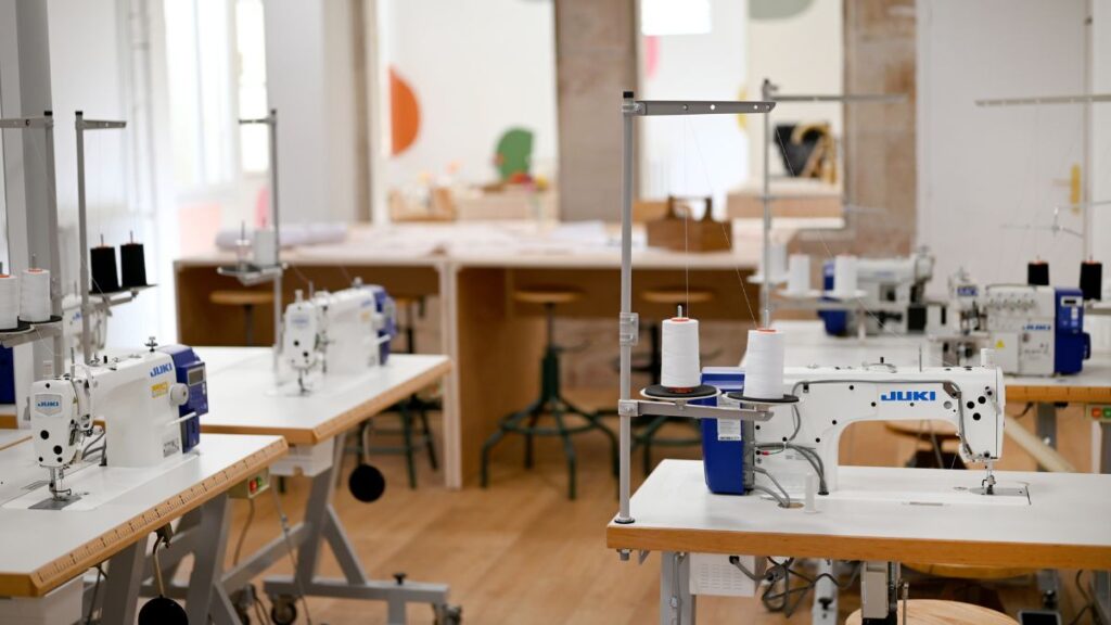 L’Atelier Pompon met également à disposition des espaces de travail entièrement équipés pour ceux qui préfèrent s’exercer en autonomie. Vous aurez accès à du matériel et des machines à coudre professionnels, vous permettant de donner vie à vos idées créatives sans contrainte.