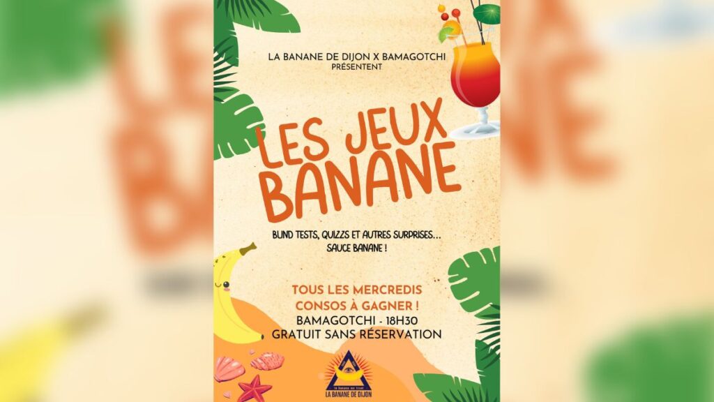 📆 Les Jeux Bananes de l’association La Banane de Dijon, se déroulent chaque mercredi à 18h30 au Bamagotchi (au sein de la Cité de la Gastronomie, 12 parvis de l’Unesco). L’entrée et la participation sont libres.