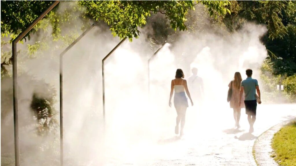 Depuis 2021, 8 sites de brumisation ont été mis en place dans différents parcs et jardins de Dijon (voir notre article, suivre notre lien).