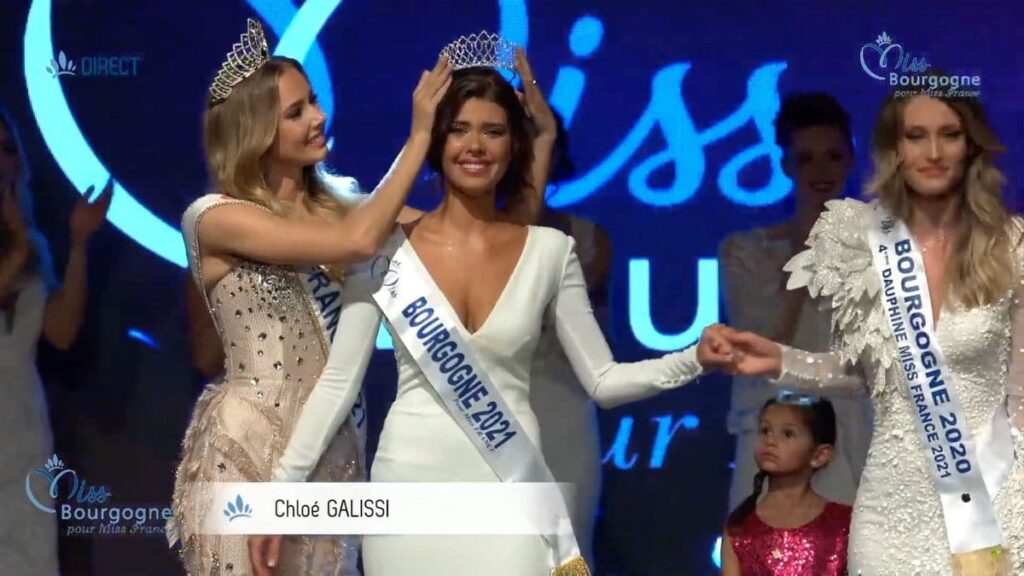 La Saône-et-Loirienne Chloé Galissi a été nommée Miss Bourgogne 2021, ce dimanche 26 septembre à L’Ogive de Chevigny-Saint-Sauveur. Le titre lui a été remis par Amandine Petit Miss France 2021, et Lou-Anne Lorphelin Miss Bourgogne 2020.