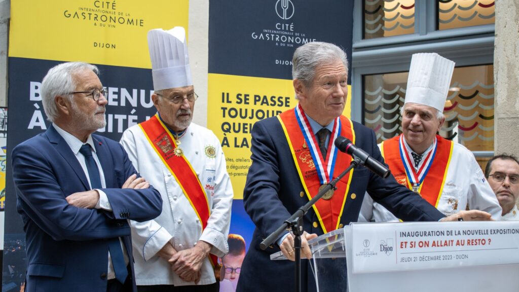 Parrainée par Michel Escoffier, arrière petit-fils d’Auguste, l’un des plus grands chefs cuisiniers Français, et Thierry Marx, chef étoilé avant gardiste du Mandarin Oriental et président de l’Union des métiers et des industries de l’hôtellerie, « Et si on allait au resto ? » est une exposition temporaire réalisée par la ville de Dijon.