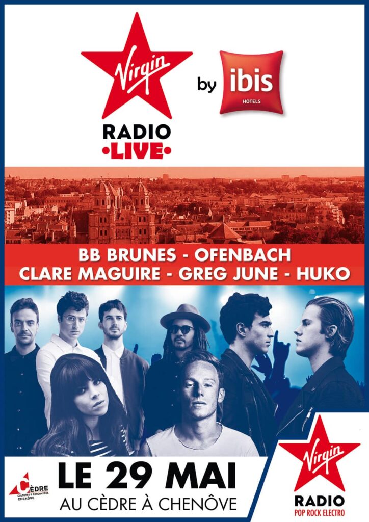 Virgin Radio organise un grand concert gratuit, mais sur invitations, au Cèdre à Chenôve ce lundi 29 mai avec les BB Brunes, Ofenbach, Clare Maguire, Greg June & Huko.