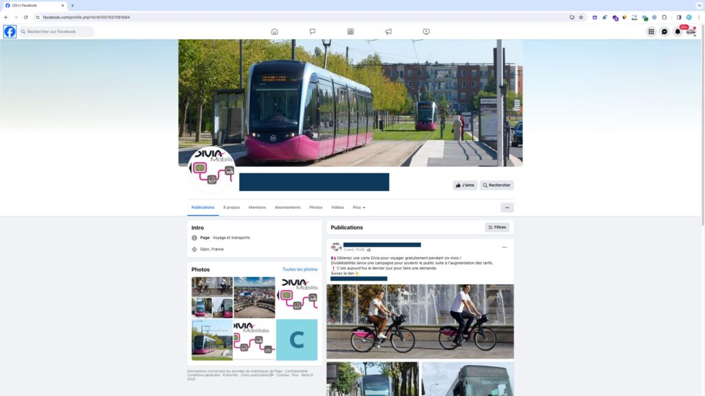 La seule et véritable page Facebook Divamobilités porte le nom « DiviaMobilités, bus, tram, vélo et stationnement de Dijon Métropole », accessible sur facebook.com/DiviaMobilites (suivre notre lien).