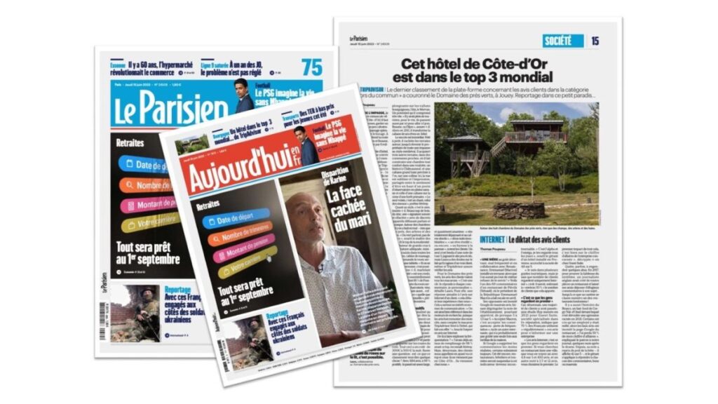 Cette fois-ci, c’est à la une du Parisien et d’Aujourd’hui en France que le Domaine des Prés Verts se voit une nouvelle fois distingué par la qualité de son service et surtout pour son environnement presque issu d’une autre dimension. Jeudi dernier, les Parisiens – et bien plus – ont pu découvrir l’établissement à travers les lignes du journal, son écrin de verdure et de bien-être. « Je suis fier de promouvoir la Bourgogne à travers cette distinction. Le Domaine des Prés Verts est un endroit hors du commun à VIVRE ou à OFFRIR, sans modération », a écrit Jérémy Leleu, le fondateur de l’établissement sur son compte Linkedin. Une mise en lumière qui a d’ailleurs été complétée par un reportage de sur M6, lors du JT de 12h45, il y a quelques jours.