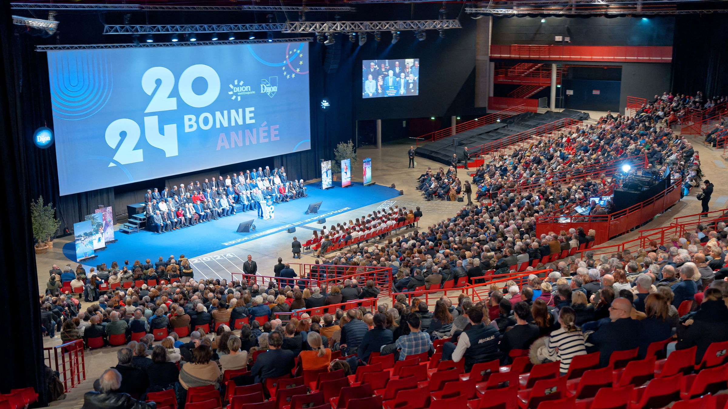 Culture, écologie, diplomatie, etc… François Rebsamen a évoqué les nombreux défis qui attendent la capitale ducale en 2024, mais également dans les années à venir, devant 3.000 Dijonnais et Métropolitains.