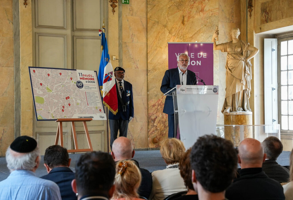« Tous ont été raflés le 26 février 1942 à Dijon, tous ont subi le triste sort réservé à tant d’innocents par les troupes d’occupation nazies. Arrachés à leurs foyers, séparés de leurs familles, ils ont été déportés vers les camps de concentration, où la cruauté et l’inhumanité les attendaient. […] Avec ces 11 pavés de mémoire nous scellons notre promesse collective de ne jamais oublier. Tous ceux qui, demain, marcheront dans les rues de Dijon sauront que notre Ville se souvient de ceux qui ont souffert et perdu la vie parce qu’ils étaient juifs. […] Commémorer les événements tragiques du passé n’est pas seulement un acte de souvenir, c’est aussi un acte de vigilance. Nous devons rester fermes et intransigeants face à toute tentative de minimisation ou de négation des horreurs perpétrées durant la Seconde Guerre mondiale. », a déclaré François Rebsamen.