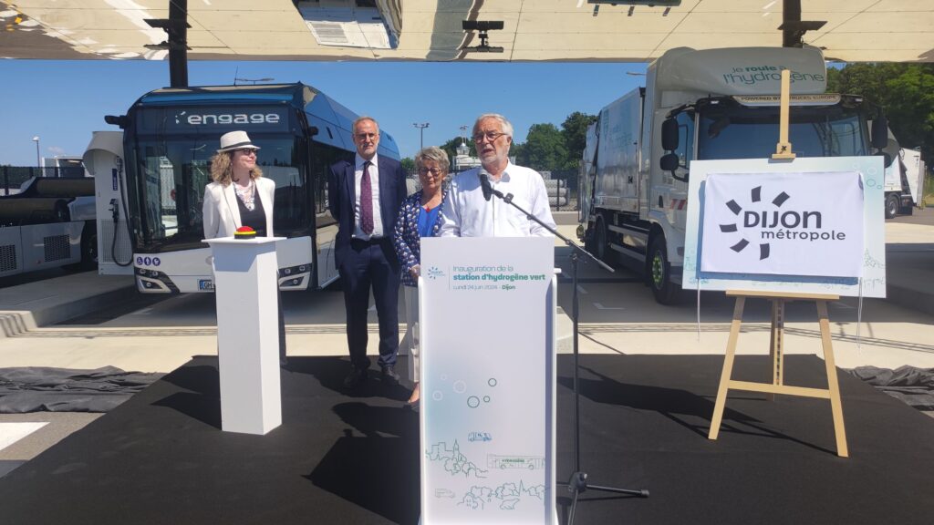« Dijon, notre capitale régionale, pose un acte fondamental pour la transition énergétique. C’est de l’ambition, c’est de l’audace, et c’est du courage, s’est réjouie Marie-Guite Dufay. Dijon est leader, dans une région qui est elle aussi leader et pionnière. Ce n’est pas par hasard que nous misons dans cette région sur l’hydrogène pour la transition énergétique et la décarbonation, et pour la souveraineté industrielle de notre pays. Nous voulons dans cette région contribuer à mettre en place toutes les briques d’une filière industrielle de l’hydrogène« . L’entreprise française du secteur de l’énergie McPhy a notamment ouvert son usine « gigafactory » de production d’électrolyseurs, nécessaires pour produire de l’hydrogène, à Belfort la semaine dernière.