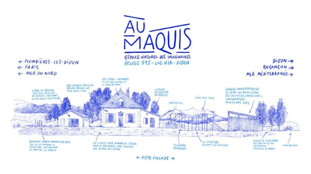 👏 Au Maquis fait son inauguration ce vendredi et tout le week-end. Il s’agit d’un tout nouveau lieu culturel, artistique, porté par Zutique Production, dans un cadre inédit sur le dijonnais, puisqu’Au Maquis s’installe sur le canal de Bourgogne, à quelques pas du lac Kir, dans une écluse. Ce soir, concert de Ze Tribu Brass Band dès 18h30.