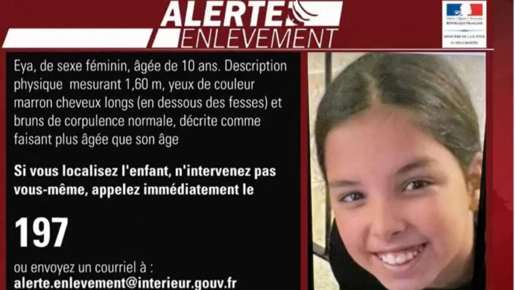 ⚠️⚠️⚠️ Eya, une fillette de 10 ans (voir photo juste au-dessus) a été enlevée hier matin à Fontaine, dans le département de l’Isère, par son père et un deuxième homme cagoulé. L’alerte enlèvement a été déclenchée hier soir pour la retrouver. La petite fille mesure 1,60 mètres, a les yeux de couleur marron et les cheveux longs et bruns. Eya est de corpulence normale, décrite comme faisant plus âgée que son âge. La jeune fille est habillée d’un pantalon noir avec des petites fleurs blanches, une veste marron avec des manches blanches, de type veste de football américain. Elle porte des chaussures noires, dont l’une est manquante.
