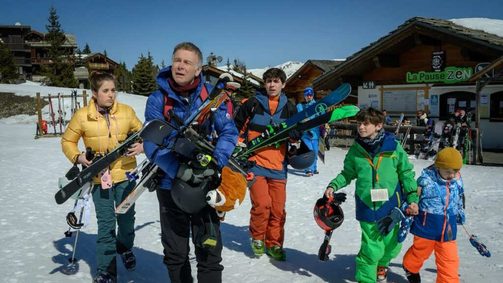 L.B. : Et bien, parce que j’ai pas mal de souvenirs avec mes enfants à la montagne, c’est quelque chose qui nous rassemble tous. En France, la montagne, le ski, le froid ; tout ça est propice à la comédie. Il y a plus de difficultés d’être à la montagne avec les enfants : les chaussures de ski, les skis à porter, les tapages entre les enfants « Papa, j’en ai marre, papa, je vais rentrer papa, j’ai faim ; où sont mes enfants ? », etc… Il y a beaucoup plus de « situations comiques » la montagne qu’à la plage. Sans oublier que cela fait partie des habitudes des Français d’aller à la montagne pour les vacances, c’est un endroit qui nous réunit tous.