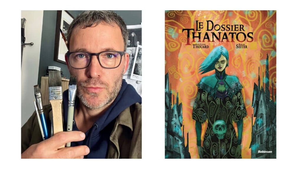 Ce style brut, on le retrouve dans votre BD Le Dossier Thanatos, écrit avec Roger Seiter et sortie en 2022 (édition Robinson Eds). Quelle est l’histoire derrière cette œuvre ?