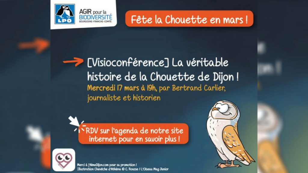 La conférence en ligne sur la Chouette de Dijon est accessible via ce lien, avec Microsoft Teams : https://l.jaimedijon.com/mr3