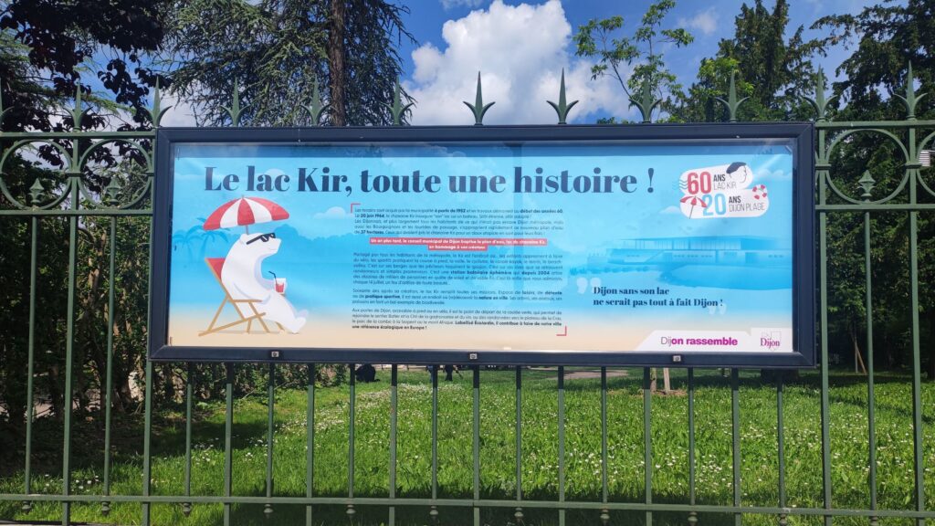 Une exposition publique retrace l’histoire soixantenaire du Lac Kir sur les grilles du Jardin Darcy à Dijon.