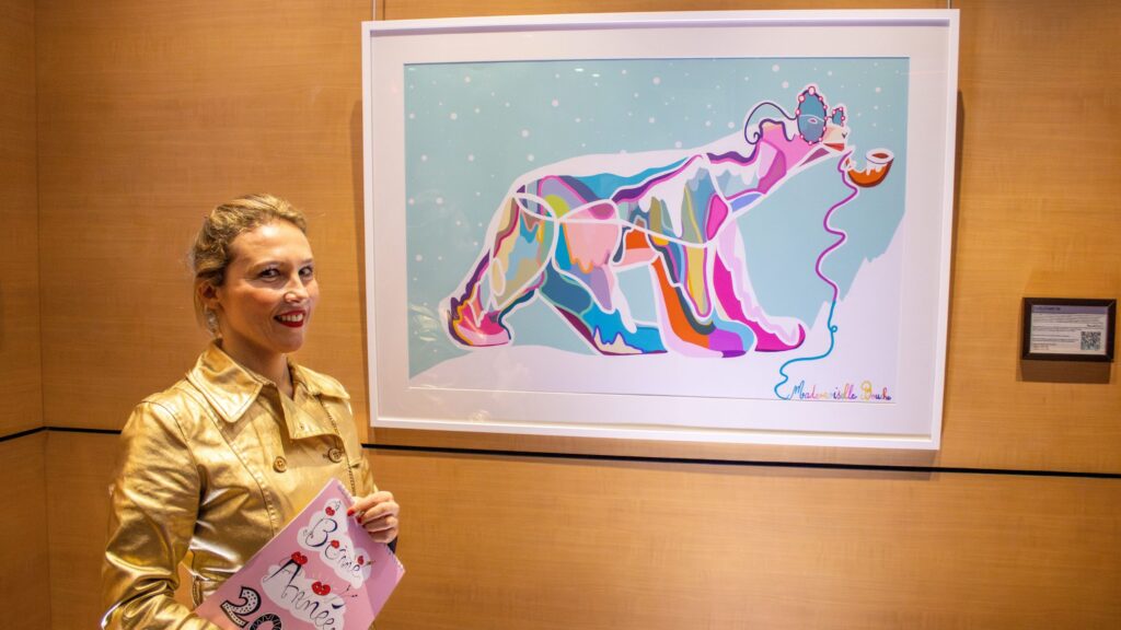 Originaire de Dijon, Caroline Perroud alias Mademoiselle Bouche est une artiste peintre et illustratrice qui surprend dans le milieu de l’art. Reconnue pour sa créativité, l’artiste a exposé plusieurs de ses œuvres et créations dans les plus grands salons parisiens et même au Japon. Choisie par l’Office Municipal de la Culture de Saulieu pour réinterpréter l’Ours de François Pompon à l’occasion de son centième anniversaire, Mademoiselle Bouche s’est construite une identité artistique singulière en réalisant des portraits d’icônes et des représentations d’animaux proches du comics et du pop art.