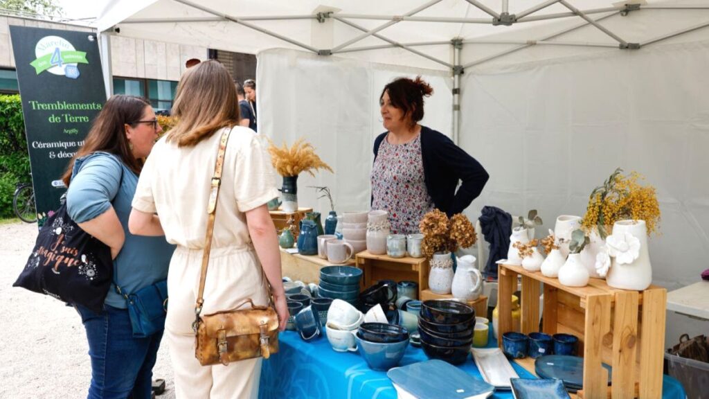 Deux ateliers : le premier sur la dégustation d’eaux pour sensibiliser le public sur la consommation d’eau du robinet et sur la réduction des déchets plastiques. Le deuxième est un atelier de confection d’accessoires en tissu de récupération.