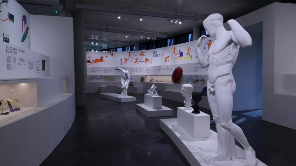 Reproduction d’un stade olympique, statues, vases, pièces de monnaie, outils… L’immersion est totale en rentrant dans cette nouvelle exposition. À travers les pièces de son exposition, le MuséoParc arrive parfaitement à transcender les frontières temporelles en unissant l’Antiquité et les Jeux olympiques contemporains.