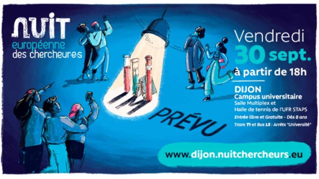La prochaine Nuit européenne des chercheurs aura lieu le vendredi 30 septembre 2022 à Dijon et dans 15 autres villes de France. Plus d’une soixantaine de chercheuses et de chercheurs de l’Université de Bourgogne de toutes disciplines confondues vous donnent rendez-vous sur le Campus de l’Université de Bourgogne.