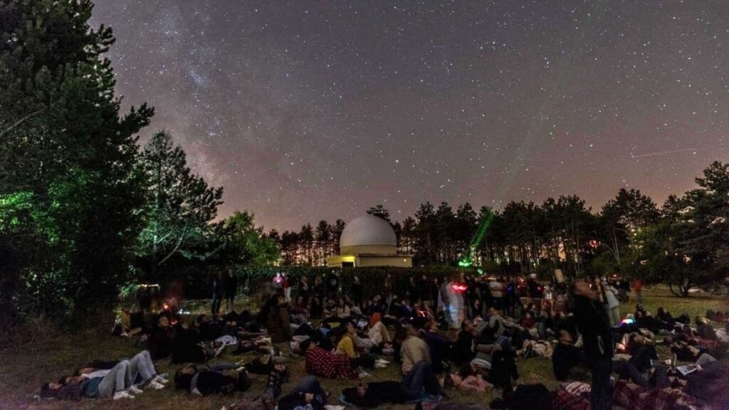 Cet instant est le moment préféré d’Eric Chariot : «Toutes les 30 minutes, un animateur montre le ciel et les constellations avec un laser et nous explique les mythologies de ces constellations. Il explique aussi comment retrouver leurs formes une fois de retour à la maison. Tout le monde est allongé dans l’herbe : c’est une expérience assez incroyable, une ambiance très chouette : il y a de l’humour, de la détente… on ne se prend pas la tête, on est là pour passer une bonne soirée et pour parler de science et d’étoiles… L’astronomie, c’est une science que j’aime parce que c’est la science qui fait le plus rêver… c’est du pur bonheur !»