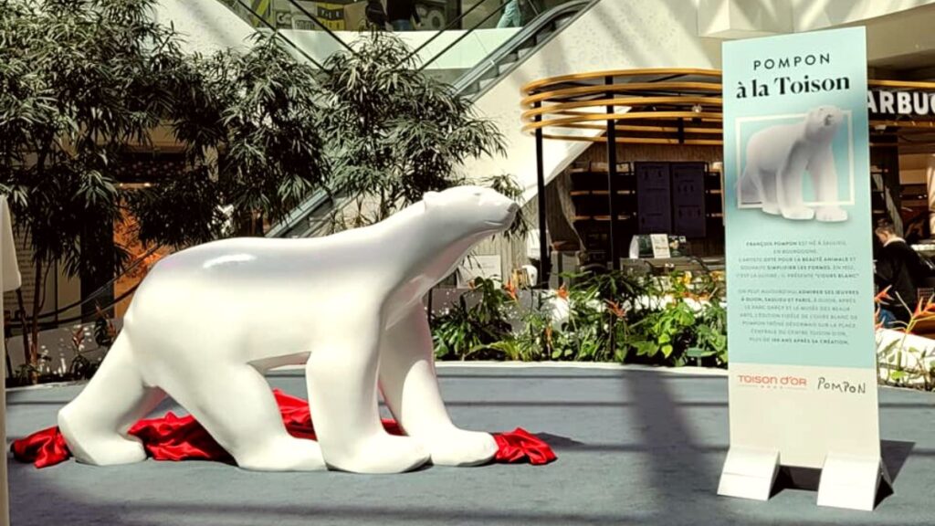 Les Dijonnais ne retrouveront plus l’Ours Pompon uniquement au jardin Darcy et au Musée des Beaux-Arts. Désormais, un nouvel Ours Pompon est installé au centre commercial de la Toison d’Or de Dijon.