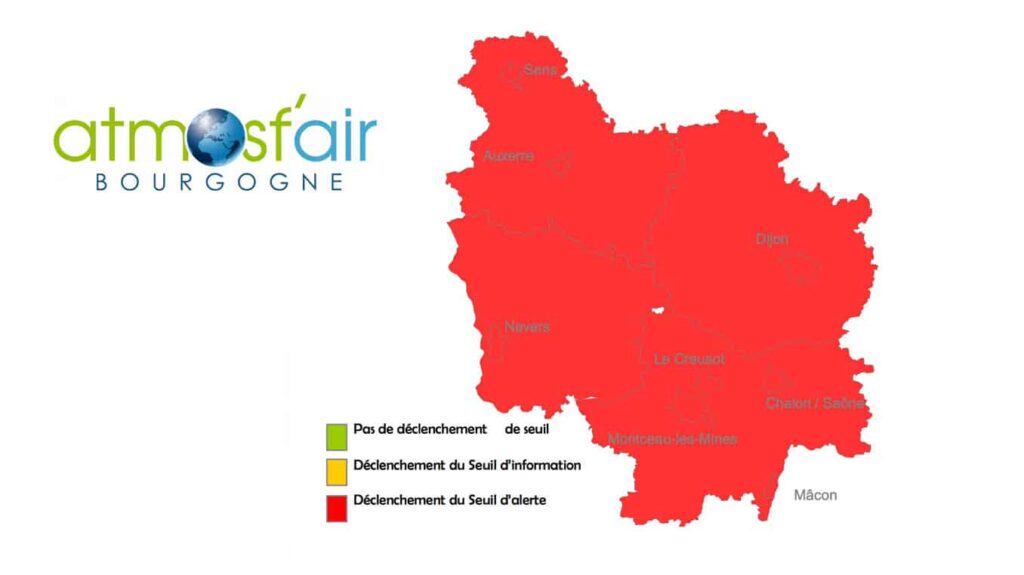 C’est Atmosf’Air Bourgogne qui l’annonce dans son dernier communiqué, du à la persistance de l’épisode et à l’augmentation des concentrations, l’ensemble de la Bourgogne passe en déclenchement du seuil d’alerte aujourd’hui mardi.