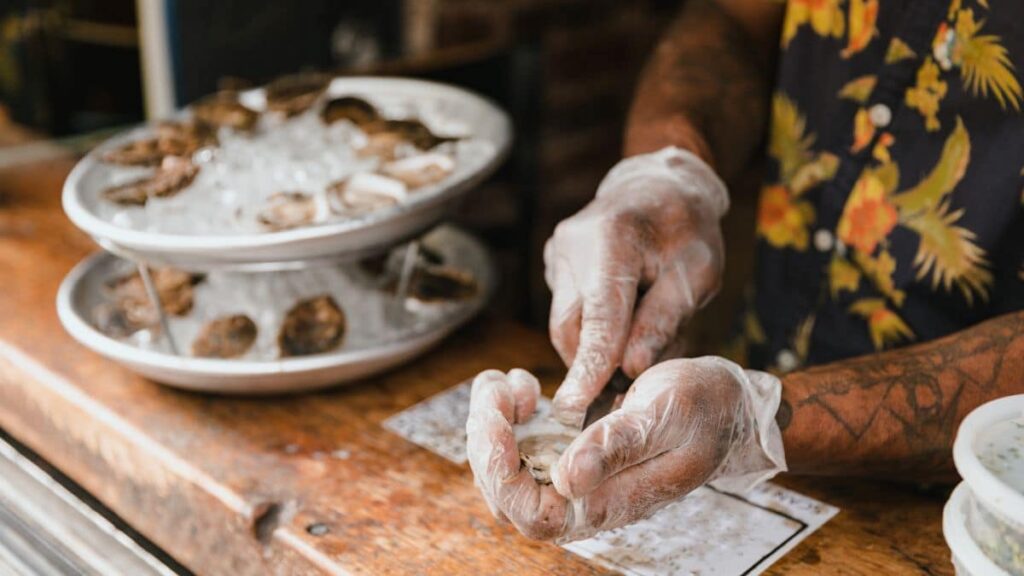 Le cas classique : l’ouverture des huîtres, plus ou moins facile à ouvrir. Un coup trop rapide et vous pourriez avoir le nerf ou le tendon du pouce coupé. Heureusement, il y a bien une méthode pour l’ouvrir sans difficulté (avec des gants et un couteau adaptés) :