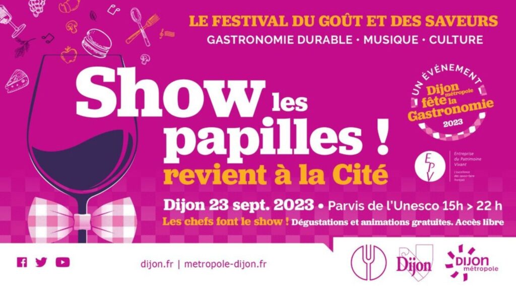 Réconfortant et surprenant, « Show les papilles ! » est un événement gastronomique incontournable à Dijon ! Placé sour le parrainage de David Le Comte, chef étoilé de l’Auberge de la Charme, l’édition 2023 promet ce samedi entre 15h et 22h, une journée bien remplie ! Dégustation de produits locaux réputés pour leur excellence, découverte de nouvelles façons de cuisiner grâce aux grands chefs de notre ville, masterclass de l’Ecole Ferrandi, concours de tartes amateur, course de garçons de café… Show les papilles est l’occasion de re-découvrir l’excellence gastronomique de notre ville dans la bonne ambiance (suivre notre lien).
