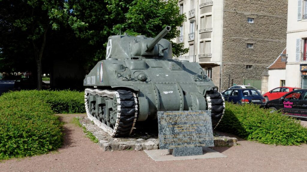 Un peu d’histoire : le char Sherman dit Duguay-Trouin était opérationnel au tout début du mois de septembre 1944. En tête d’un cortège de 6 chars faisant route vers la capitale bourguignonne, il aurait dû servir à la libération de Dijon. Seulement, le véhicule blindé a reçu deux obus allemands et trois soldats y ont perdu la vie. La ville a finalement été libéré quelques jours plus tard, le 11 septembre 1944.