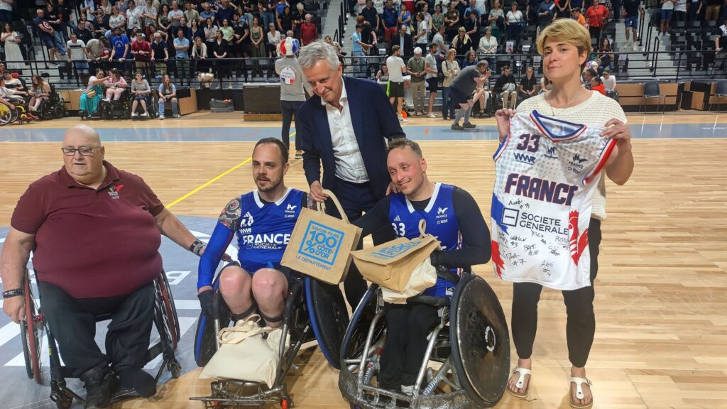Dans le chaudron dijonnais du Palais des Sports, les Bourguignons Corentin Le Guen et Sébastien Verdin, ainsi que leurs coéquipiers de l’Équipe de France de rugby fauteuil se sont imposés, avec solidité et panache, dans les derniers instants de la rencontre face au Danemark. Score final : 55-54.