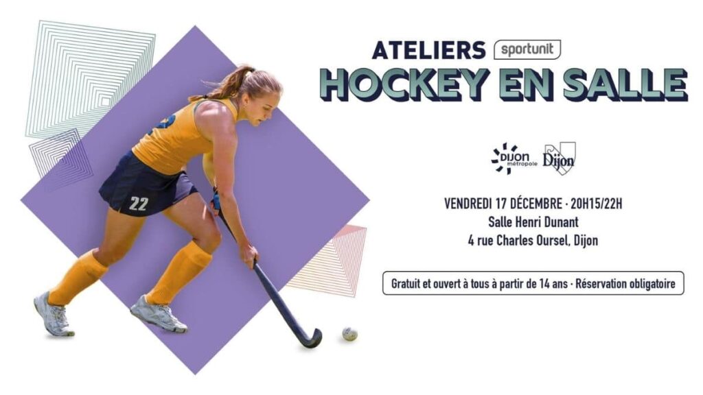 Pour vous essayer au hockey en salle, rendez vous le vendredi 17 décembre à 20h15 à la salle Henri Dunant. Attention, l’atelier est possible sur inscriptions gratuites uniquement. Attention, le nombre de place limité. Pour vous inscrire, rendez-vous sur la plate-forme de réservation en ligne.