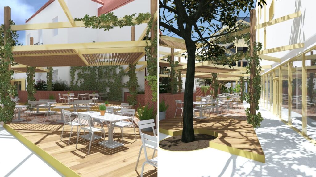 Pour finir, « Les Terrasses Dauphine » tend à devenir un pôle innovant brasserie/restauration de plus de 1200 mètres carrés dedans-dehors et bioclimatique, largement ouvert sur le ciel et l’espace public.