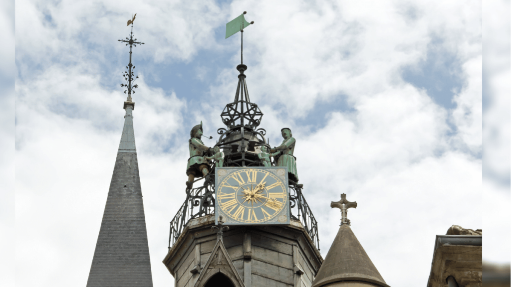 Je suis un immigré Belge, arraché à ma belle ville de Courtrai par l’armée de Philippe de Hardi pour ensuite être offert en cadeau à la ville de Dijon. Le voyage fut assez chaotique, ma cloche en a même été brisée.