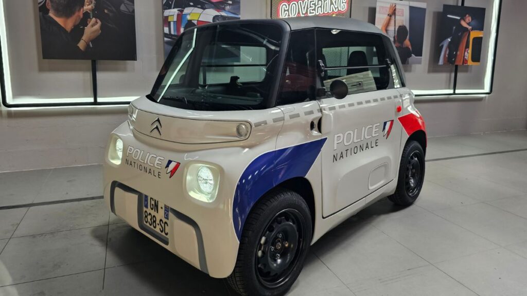 Vous ne rêvez pas ! La première Citroën AMI de France siglée aux couleurs de la police nationale sort des ateliers d’AVS Communication à Dijon.