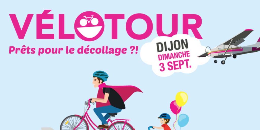 VELOTOUR est de retour le dimanche 3 septembre avec un parcours cyclo-ludique unique à vivre entre amis ou en famille. 15 à 25 km de parcours avec une quinzaine de sites que petits et grands pourront apprécier en les traversant à vélo ! C’est le concept de l’événement VELOTOUR créé il y a maintenant 12 ans à Dijon pour découvrir une ville à vélo en rentrant dans des lieux habituellement fermés à cette pratique !