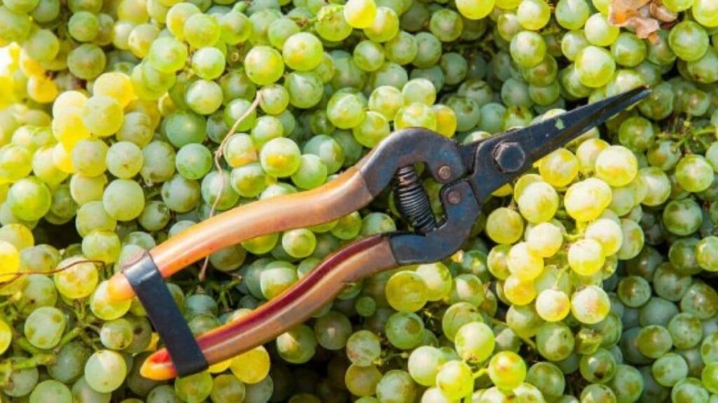 Coupeur : il récolte au sécateur les grappes de raisin et les dépose dans le seau à vendange. Dès qu’il est plein, il le verse dans la hotte du porteur.