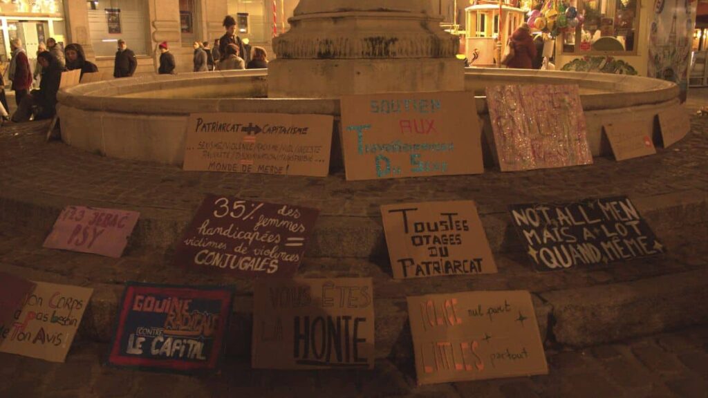 Des revendications que Michelle, 24 ans et militante, partage avec ses camarades : « Je suis là pour soutenir toutes les personnes qui souffrent du système patriarcal. En tant que femme, je le suis, mais je suis pas à la seule. C’est pour ça que je manifeste. Je pense que c’est quand même un sujet qui est connu de tout le monde aujourd’hui, mais qui pour autant n’est pas suffisamment saisi ou en tout cas pas politiquement. Les choses bougent trop lentement donc c’est une manière de résister, de protester et de dire qu’on est là ».