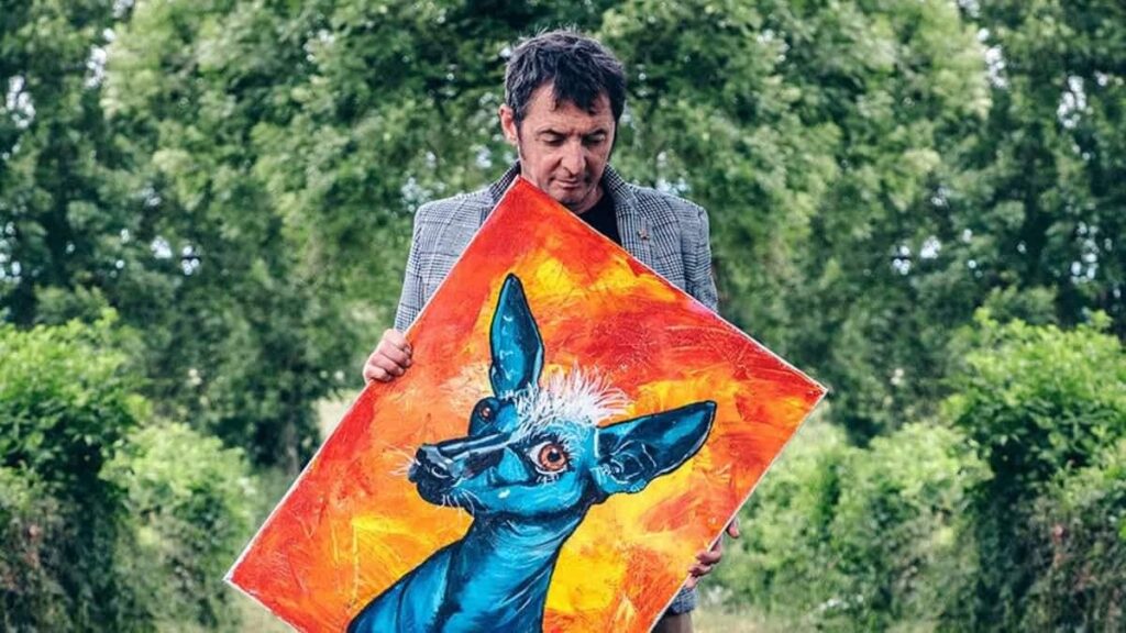 Le regard perçant d’un chien bleu sur un fond de couleur de feu. C’est la pochette du nouvel album “L’Autre” de l’artiste dijonnais Yves Jamait, un an après “Parenthèse 2”.
